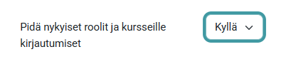 Muista myös valita kohta pidä nykyiset roolit ja kurssille kirjaumiset. Muuten vastuuopettajan roolisi poistuu.